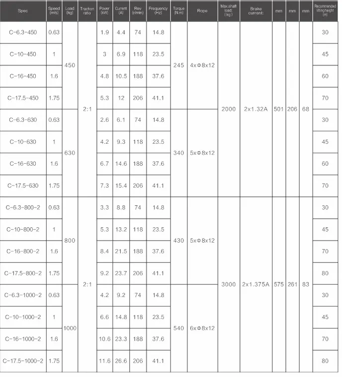 Rated speed: 0.63m/s-1.75m/s
