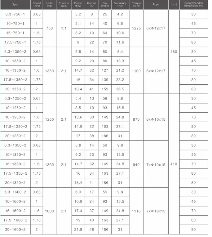 A: The motor supports a rated payload from 450kg to 2000kg, covering a wide weight capacity spectrum from small residential lifts to heavy‑duty commercial systems. The rated speed is adjustable from 0.63m/s to 2.0m/s, allowing it to efficiently transport people in both low‑rise apartments and high‑speed commercial building elevators.